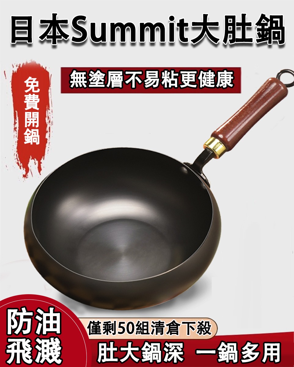15分鐘前日本Summit鍋具超值入手。僅剩50組限時清倉,一鍋多用輕鬆駕馭百味,日本原礦精鐵大肚鍋,無塗層物理不沾黏更安心 - 【僅限今日!】Summit炒鍋28cm1件(送鍋蓋+鐵鏟)-NT$ 1480